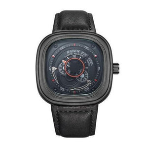 The INDUCTOR Military Watch is an outstanding GIMTO invention. The modern and unusual design of this watch is what makes it a distinctive piece. It features a square shaped stainless steel case design, with a remarkable dial accompanied by small subtle details, and a classic genuine leather strap. Powered by a precise quartz analog movement, this is an unforgettable watch.